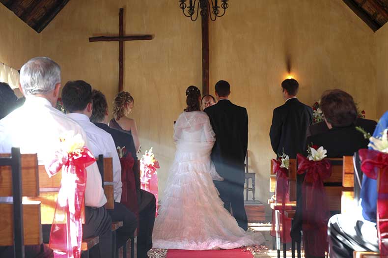 Our Chapel, enveloped in the midst of a rose and lavender garden, can comfortably seat up to 120 people and has been neutrally decorated to accommodate any theme or colour scheme you may have envisioned for your special moment. The signing of the contract can be done in the chapel, in the presence of your friends and family, on our specially handcrafted steel table.